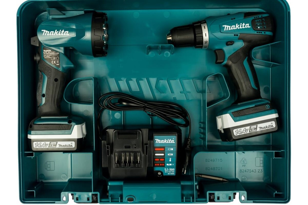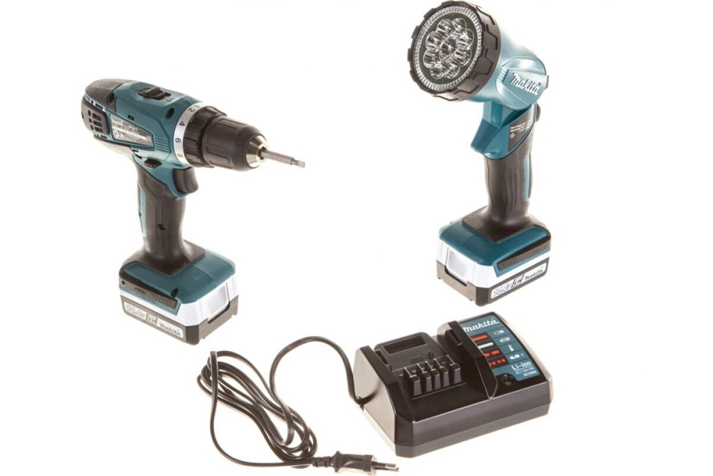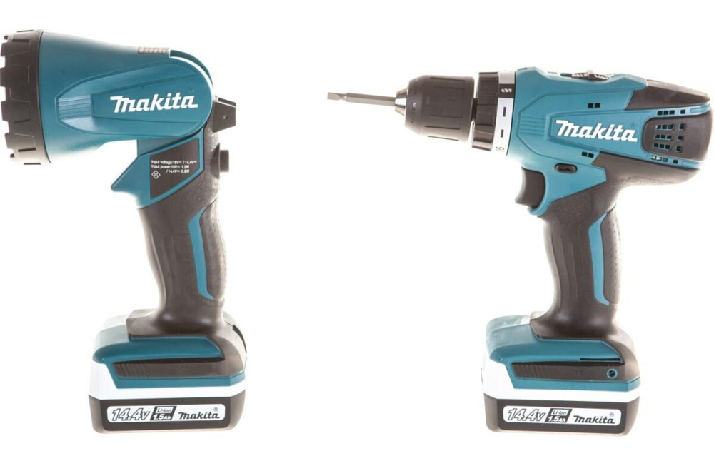 Дрель ак,14,4 В,2х1.5АчLi-ion,БЗП-10мм,0-400\0-1400об\м,30\15Нм,1.4кг, Фонарь чем,G-серия Makita DF347DWLE
