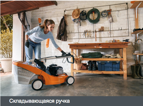 Складная рукоятка способствует экономия места при хранении.