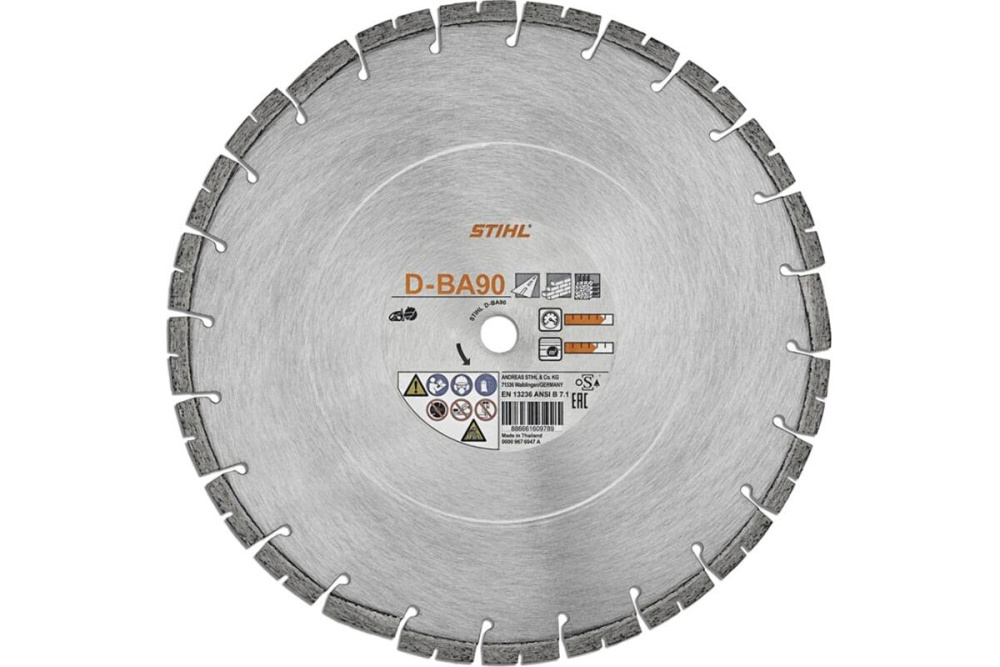Алмазный отрезной круг STIHL D-BA90 является настоящим универсальным инструментом и подходит для обработки широкого спектра материалов, таких как асфальт, кирпич, черепица или твердый армированный бетон.