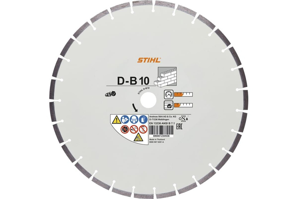Алмазные отрезные круги STIHL с маркировкой D-B10 подходят для любых строительных работ: резка строительного камня, бетонного камня, бетона.
