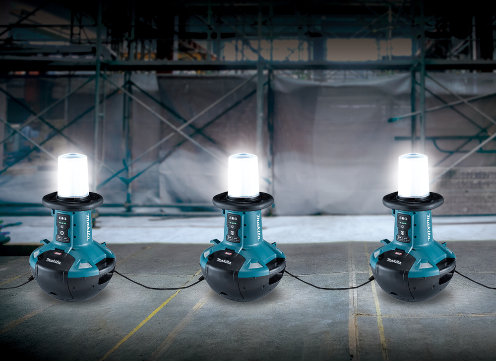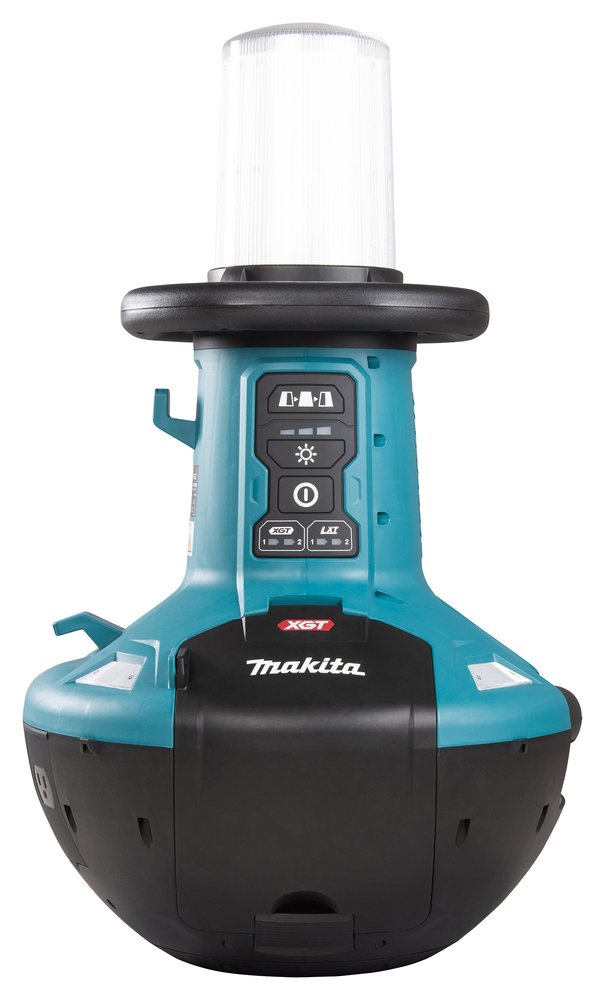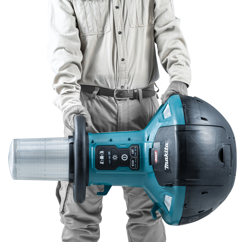 Наружная лампа Makita ML010G XGT 40 В Max с тремя режимами освещения: низким, средним и высоким. Может также использоваться с батарейками LXT 14,4 В / 18 В. Три настраиваемых варианта освещения на 180 градусов влево, на 360 градусов по окружности и на 180 градусов вправо.