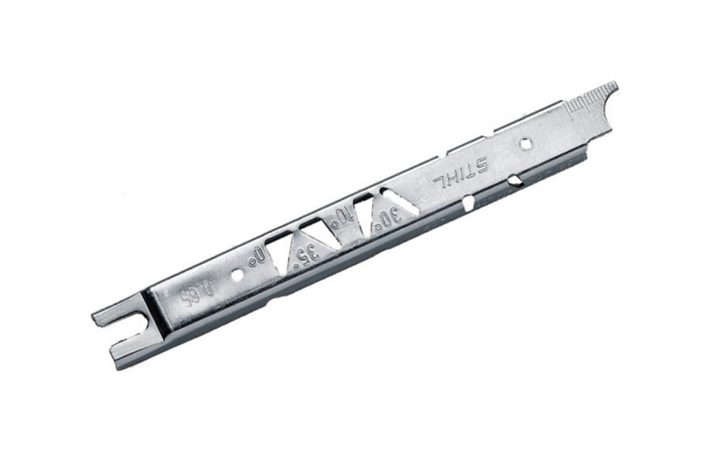 Опиловочный калибр Stihl 11068934000 необходим для определения шага цепи и толщины ведущих звеньев. Устройство обеспечивает точные измерения.