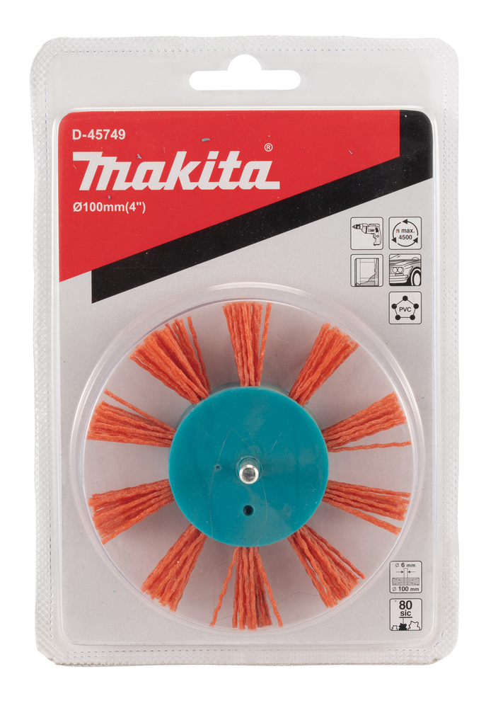 Щетка нейлоновая дисковая "Звезда" (d100 мм, красная, G80, 6 мм) Makita D-45749 100 мм 80G Звезда Нейлон Оранжевая Шлифование