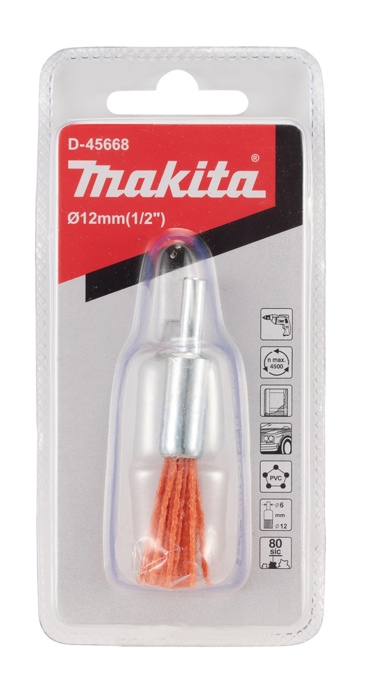 Щетка нейлоновая кистевая (d12 мм, красная, G80, 6 мм) Makita D-45668 12 мм 80G Кистевая Нейлон Оранжевая Шлифование