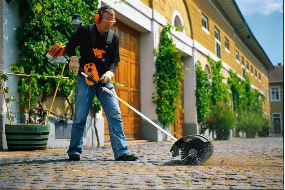 Подметальная щётка Stihl KB-KM 46017404905 совместима с базовыми двигателями Штиль, имеющими круговую рукоять. Жесткая щетина легко и быстро расчистит неровные поверхности с щелями и канавками от втоптанной земли и грязи. Идеальна для ухода за мощеными дорожками в саду или около дома. Защита оператора во время работы обеспечивается специальным щитком и встречным вращением щетки.