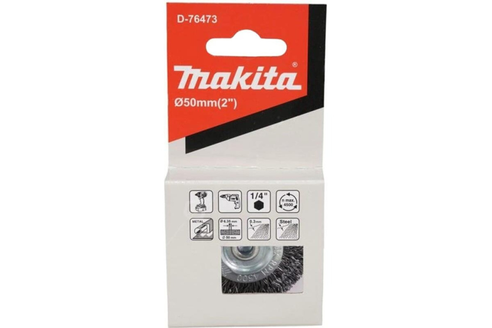 Щетка проволочная дисковая (d50 мм, толщ. проволоки 0.3 мм, гофрированная, металл, 1/4") Makita D-76473