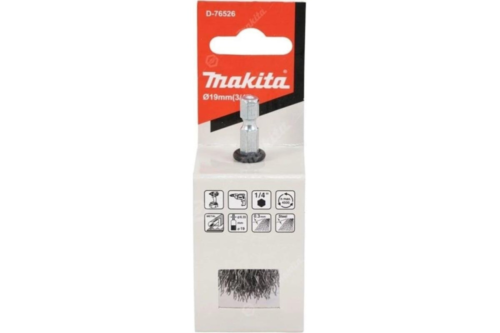 Щетка проволочная кистевая (d19 мм, толщ. проволоки 0.3 мм, гофрированная, металл, 1/4") Makita D-76526