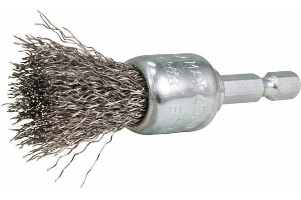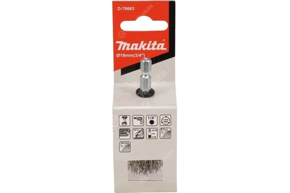 Щетка проволочная кистевая (d19 мм, толщ. проволоки 0.3 мм, гофрированная, нержавеющая сталь, 1/4") Makita D-76663