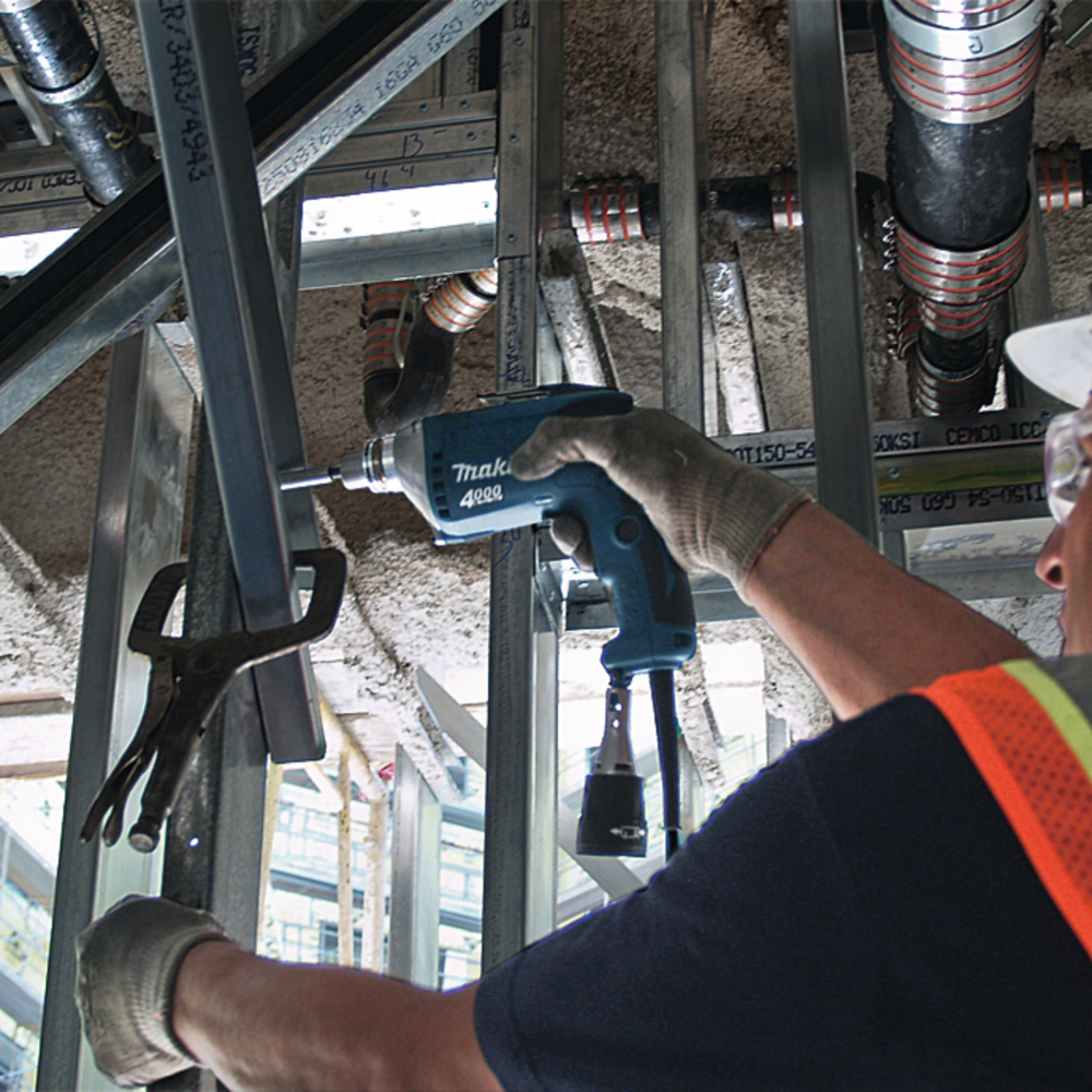 Шуруповерт для гипсокартона 5 мм. Литой алюминиевый корпус для легкого веса. Хранение бит на корпусе инструмента. Зажим на пояс для переноски.