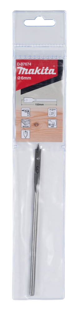 Сверло перьевое по дереву 6x150 Makita D-07674 Дерево Плоское/ Перьевой 8,0 x 150 мм