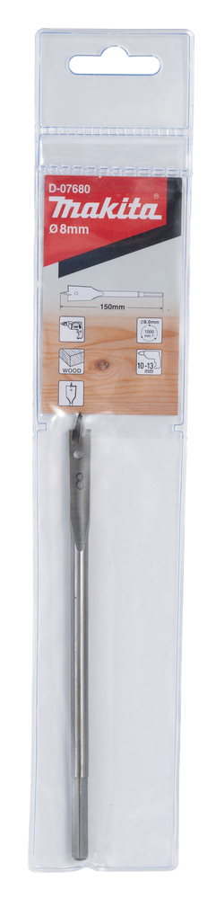 Сверло перьевое по дереву 8x150 Makita D-07680 Дерево Плоское/ Перьевой 8,0 x 150 мм