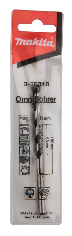 Сверло универсальное 6х58x100 Makita D-30318 Универсальное 6,0 x 58 х 100 мм HM CT